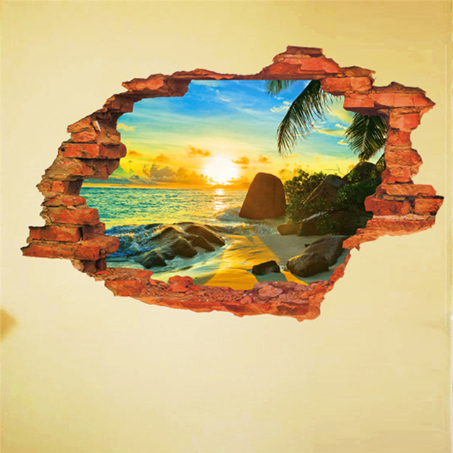 3style:C type sunset sea view 3D landscape wall