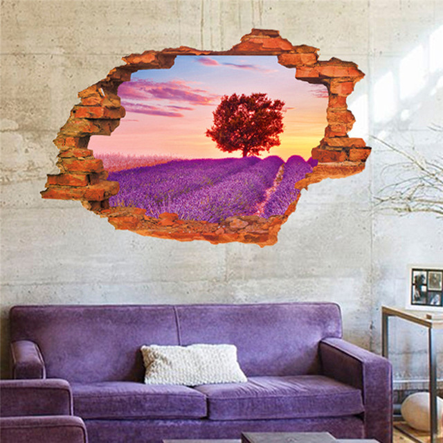 5style: E style romantic lavender 3D landscape wall