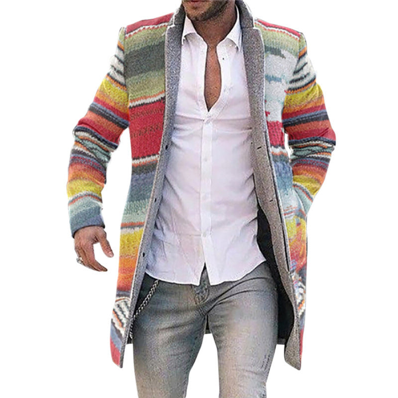 Fashion printed lapel coat mid-length coat